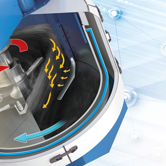 MixSolver® uses far less energy in the production of electrode slurry than a planetary mixer. A planetary mixer consumes around 8,000 kWh of electric energy per day to achieve a daily throughput rate of 20 m3 of slurry, while an Eirich mixer requires just 400 kWh to do the same – a vast cost saving. And this does not even take into account the energy required for cooling, which can be around the same amount again for a planetary mixer but is not required at all for an Eirich mixer. Instead of running 5-9 high-volume planetary mixers in parallel, each of which requires 4-8 hours for a single batch, you can produce the same amount of slurry in one or at most two MixSolvers® in just 30 minutes. In addition, you will also benefit from a huge reduction in floor space requirements, with the Eirich Mixer only needing a third of the space required for planetary mixers.