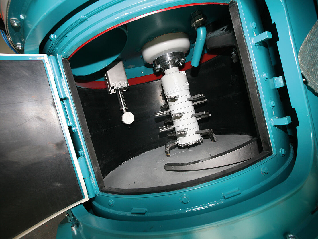 The Eirich moisture/temperature probe is easy to retrofit in the Eirich intensive mixer.