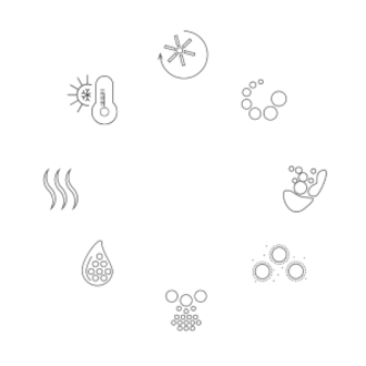 These include mixing, reacting, dispersing, dissolving, slurrying, plasticizing, deaerating, defibering, solubilizing, agglomerating, disagglomerating, pelletizing, granulating, kneading, moistening, drying, heating, cooling, stripping, impregnating, coating, and hydrophobing.